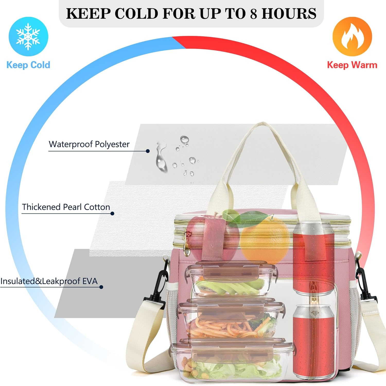 【防漏】 午餐盒外部采用涤纶材料制成,防水防刮,轻便耐磨。午餐包内部采用加厚泡沫填充和柔软的EVA材料,有效隔热和防水。 午餐盒的 EVA 衬里光滑易清洁。 :